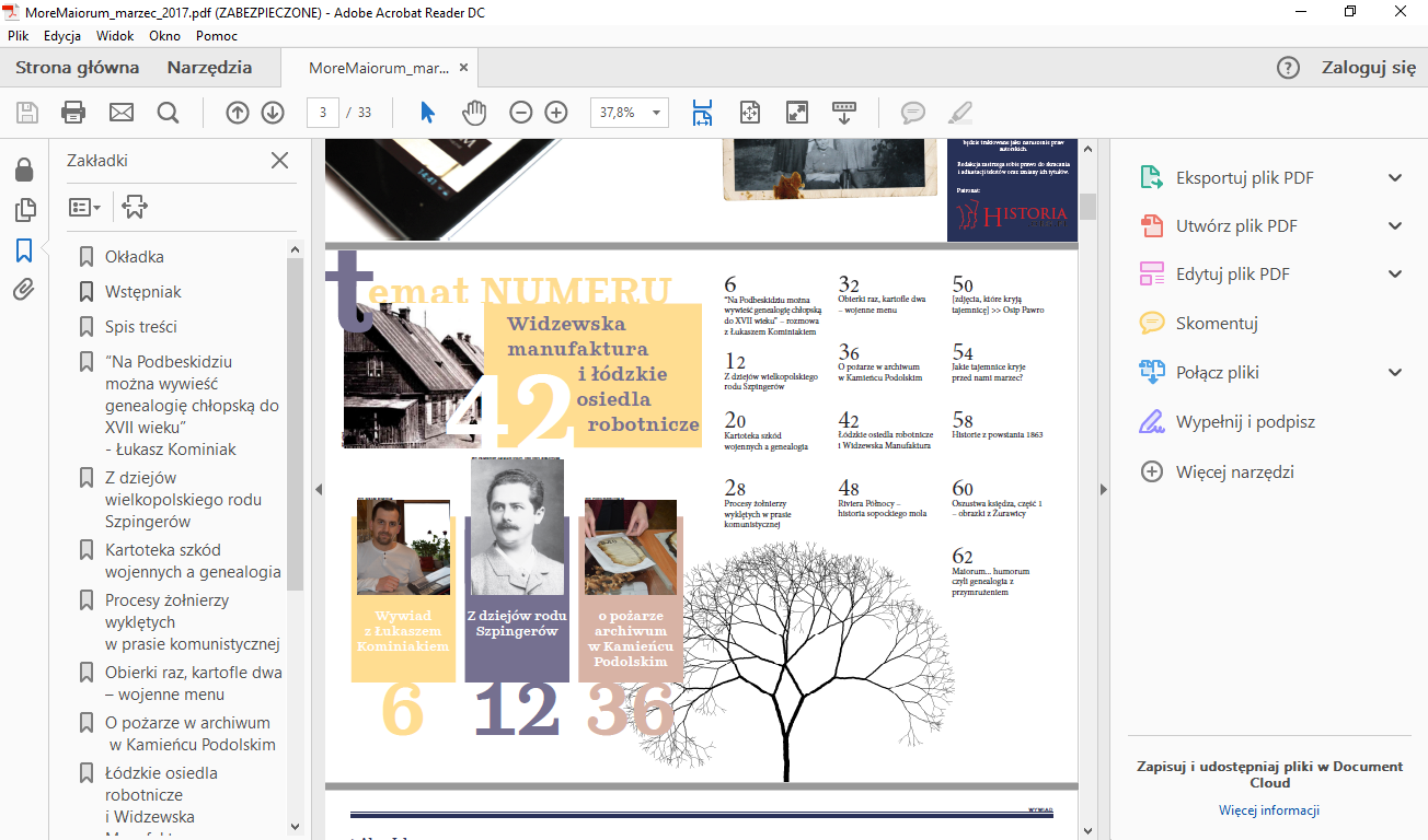 UWAGA! Od styczniowego numeru, otwierając „More Maiorum” w Adobe Acrobat (podstawowy program do obsługi plików PDF), po lewej stronie można otworzyć okienko „Zakładki”. Dzięki temu będziecie mogli swobodnie przechodzić między artykułami. Wystarczy kliknąć na tytuł: