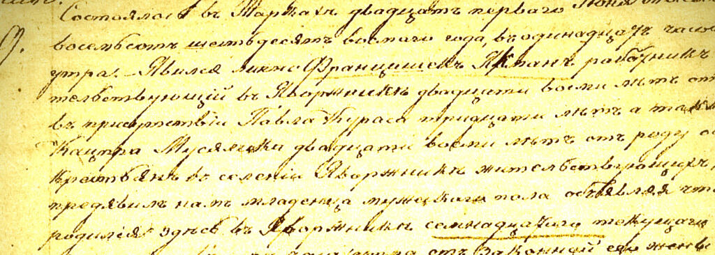 Początkowo za bardzo nie wiedziałem, co o tym myśleć. Przecież kilkudziesięciu wpisanych wcześniej przodków, nie było moich! Szybko więc zacząłem szukać aktu urodzenia Franciszka. Mam. Urodzony w 1837 r., czyli 2 lata przed tamtym. Jak na tak małym obszarze mogło pojawić się dwóch Jakmanów o imieniu Franciszek(!) – pomyślałem.
