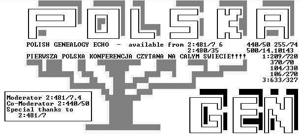 Gwoli precyzji, Internet powstał w 1981 r., a w Polsce był dostępny od 1990 r. (najpierw za pośrednictwem sieci BITNET), ale tylko na niektórych uczelniach wyższych. Zresztą na całym świecie na powszechny dostęp do sieci trzeba było czekać jeszcze wiele lat, a sieć FIDO dawała możliwości szerszych kontaktów (również z adresami internetowymi). W 1993 r. założyłem tzw. echo albo konferencję (odpowiednik listy dyskusyjnej albo forum) o nazwie „Polska Gen”, która szybko zyskała sobie popularność i miała wielu subskrybentów w Stanach Zjednoczonych. Poza tym sam czytałem inne echa genealogiczne ze świata, szczególnie dotyczące formatu GEDCOM i technicznych rozwiązań komputerowych dla genealogii.