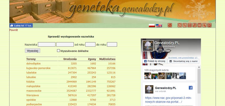 Największa tego typu baza genealogiczna w Polsce i jedna z największych w Europie. Miliony wpisów dotyczących osób mieszkających na terenie przed- i powojennej Polski. Geneteka przekroczyła właśnie 25 milionów rekordów!