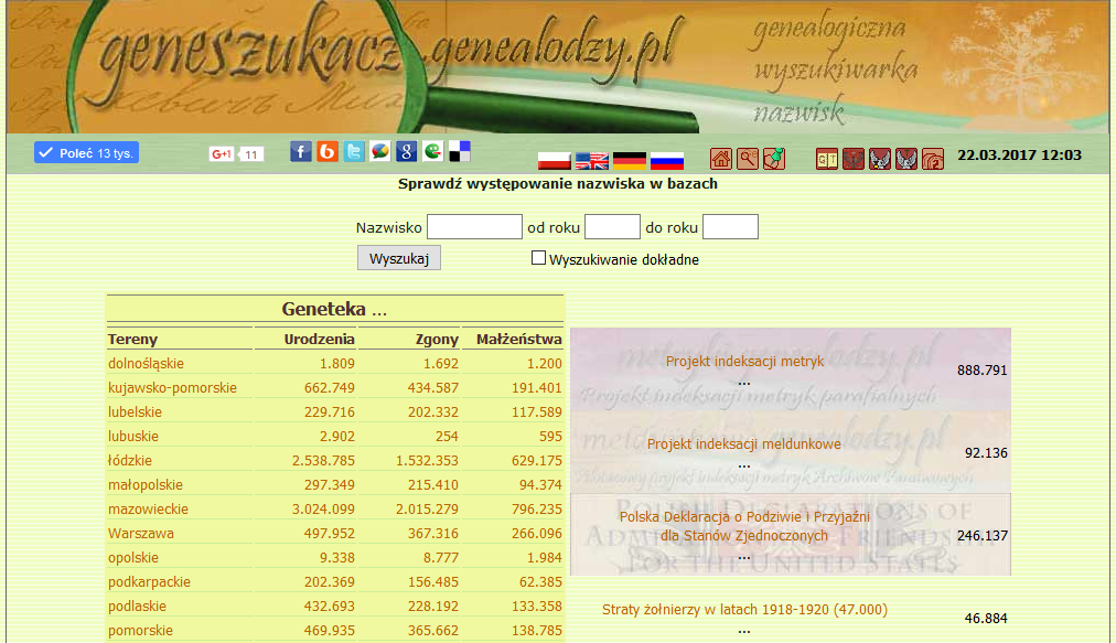 Na stronie głównej Geneteki nadal znajdziemy tylko jedno okno, w którym możemy wpisać nazwisko: