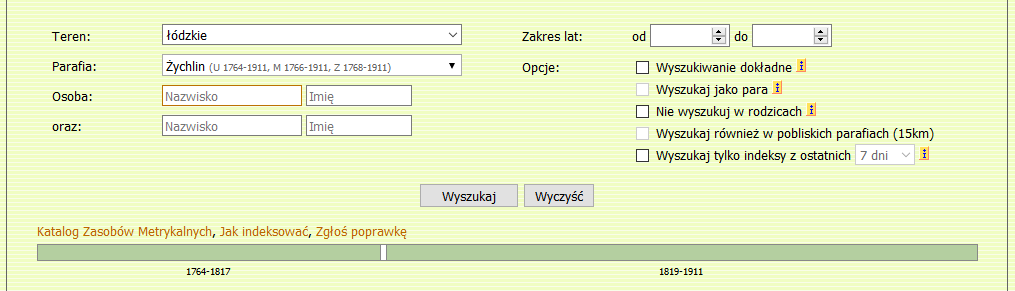 2) Możemy także określić zakres lat, w jakim poszukiwane ma być nazwisko.