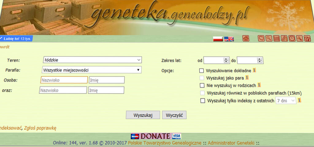 Pełną funkcjonalność bazy danych możemy ujrzeć po kliknięciu w dowolne województwo. Poniższe możliwości Geneteki reprezentowane są na przykładzie parafii z województwa łódzkiego.