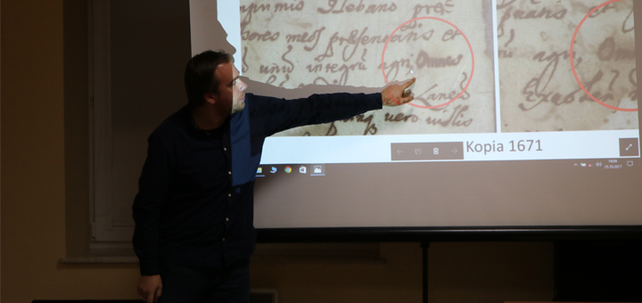 Spotkanie miłośników historii regionalnej z jej doświadczonymi badaczami miało miejsce w środę, 25 października i rozpoczęło się o godzinie 17.00. Efekty swych naukowych poszukiwań zaprezentowało trzech prelegentów. Konferencję otworzyło wystąpienie księdza Stanisława Niewińskiego, który przyglądał się zawartości parafialnych kronik, a konkretniej zagadce niektórych sekwencji XVII-wiecznej kroniki parafii juchnowieckiej, przez Wojciecha Ludwika Orzeszkę, proboszcza tejże, spisanej. Słuchacze mogli przekonać się jak cennym i ważnym dla historyka źródłem jest świadectwo kronikarzy – także tych lokalnych. Kolejne wystąpienie rzuciło nieco światła na inne ważne źródło informacji – doniesienia lokalnej prasy, pełnej niewprawnych przedwojennych reklam, adresów, których już nie ma i… kronik policyjnych. Pełnokrwisty, gdyż pełen blasków i cieni portret Gminy Juchnowiec w okresie dwudziestolecia międzywojennego zgrabnie naszkicował Piotr Sobieszczak, opowiadając o drobnych przedsiębiorcach, urokach przedwojennego życia i niechlubnych wyczynach lokalnej łobuzerki. Cenne rękopisy pokazywał i objaśniał Wiesław Wróbel, realizując temat Wokół początków parafii w Juchnowcu Kościelnym. Po każdym wystąpieniu oprócz kaskady oklasków z audytorium spływały także pytania, a referenci z przyjemnością wdawali się w dyskusje i rozwijali wątki, które szczególnie zainteresowały słuchaczy.