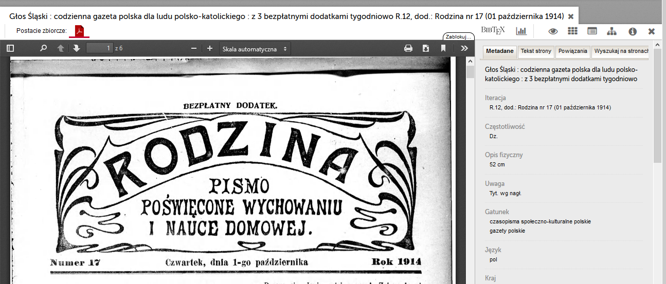 Po wybraniu interesującej nas publikacji, po prawej stronie mamy do dyspozycji ciekawe narzędzia. Pierwsze: lupa służy do pomniejszania i powiększania obrazu; klikając 1:1 powrócimy do oryginalnego rozmiaru.