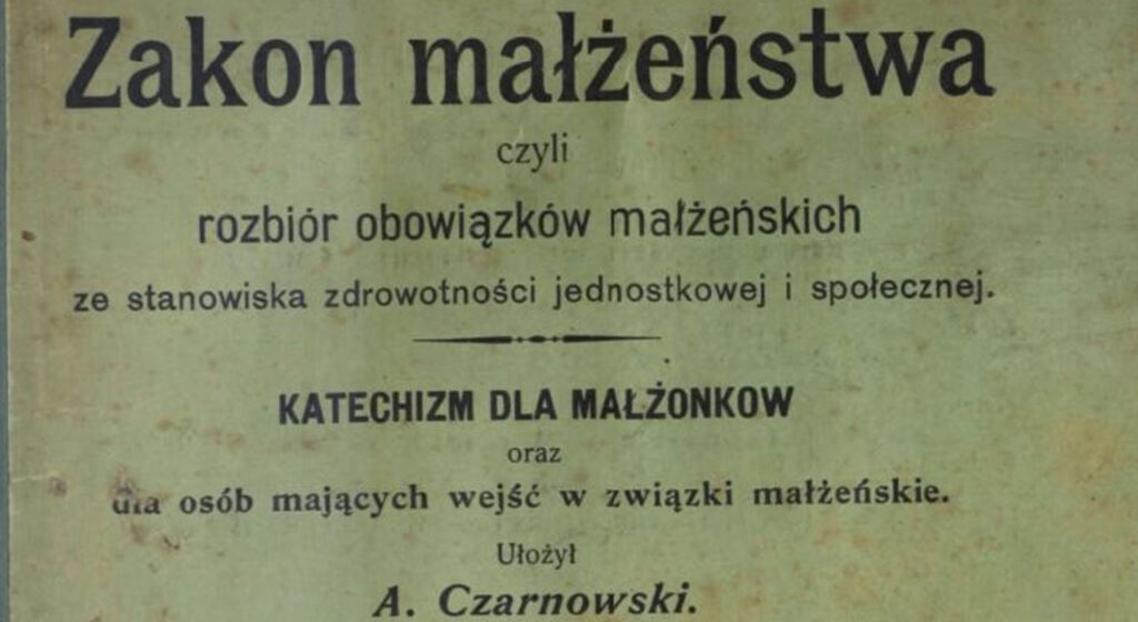 W 1910 roku ukazał się poradnik Augusta Czarnowskiego pod dość przydługawym tytułem „Zakon małżeństwa czyli rozbiór obowiązków małżeńskich ze stanowiska zdrowotności jednostkowej i społecznej: katechizm dla małżonków oraz dla osób mających wejść w związki małżeńskie”.