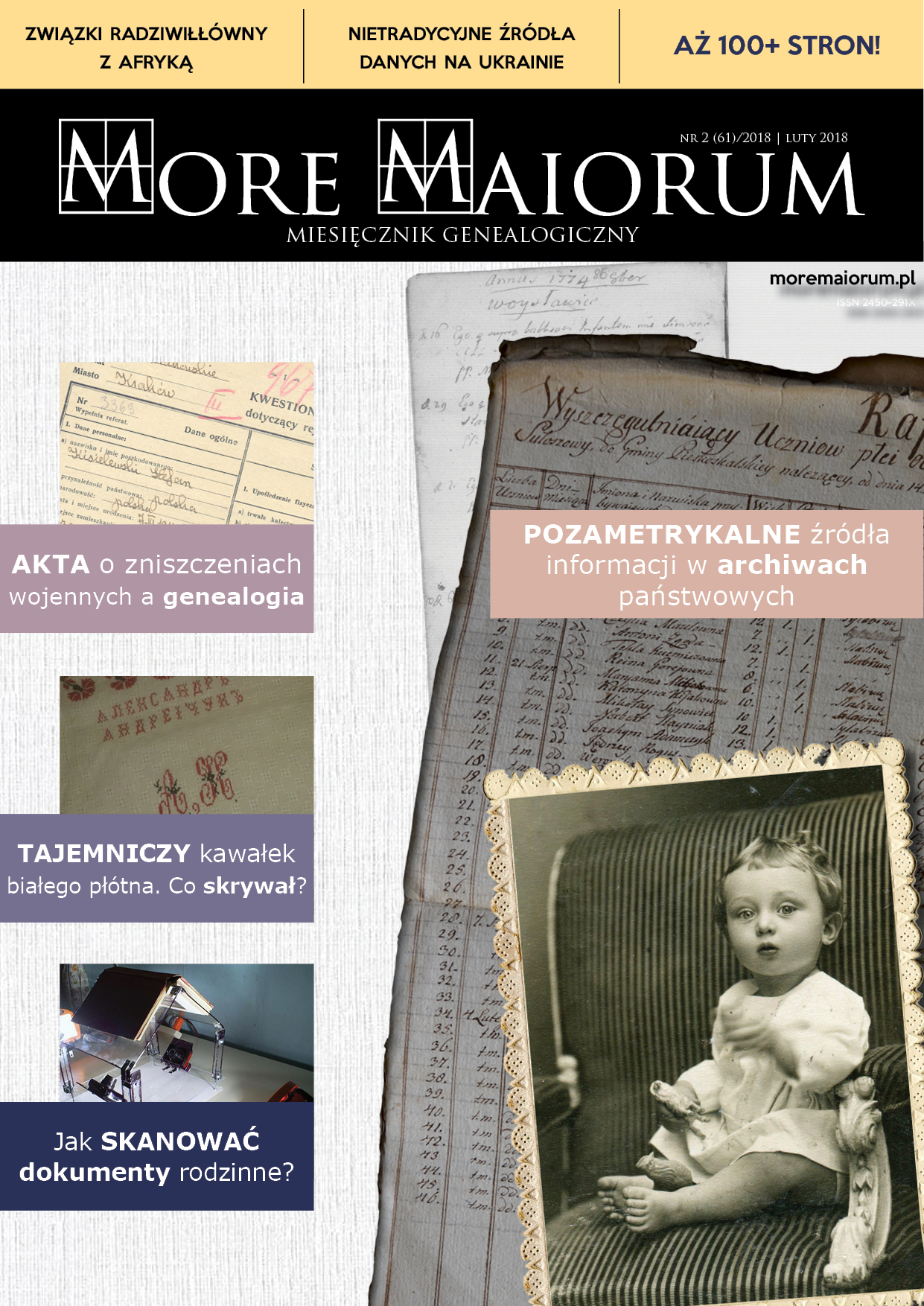 O zespole akt miast i gmin pisała już w numerze 4(51)/2017 More Maiorum Zofia Jakóbczak. Jest to wciąż, moim zdaniem, niedoceniany zbiór różnego rodzaju dokumentów. Istotne informacje znajdą tu zarówno poszukiwacze rodzinnej historii, jak i lokalni historycy czy osoby zajmujące się zagadnieniami z pogranicza socjologii, demografii historycznej, a nawet politologii.